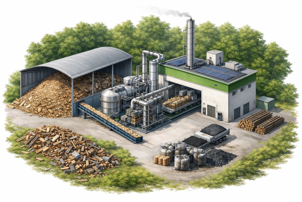 - ♻️ Biokohle-Herstellung → CO₂-Speicherung